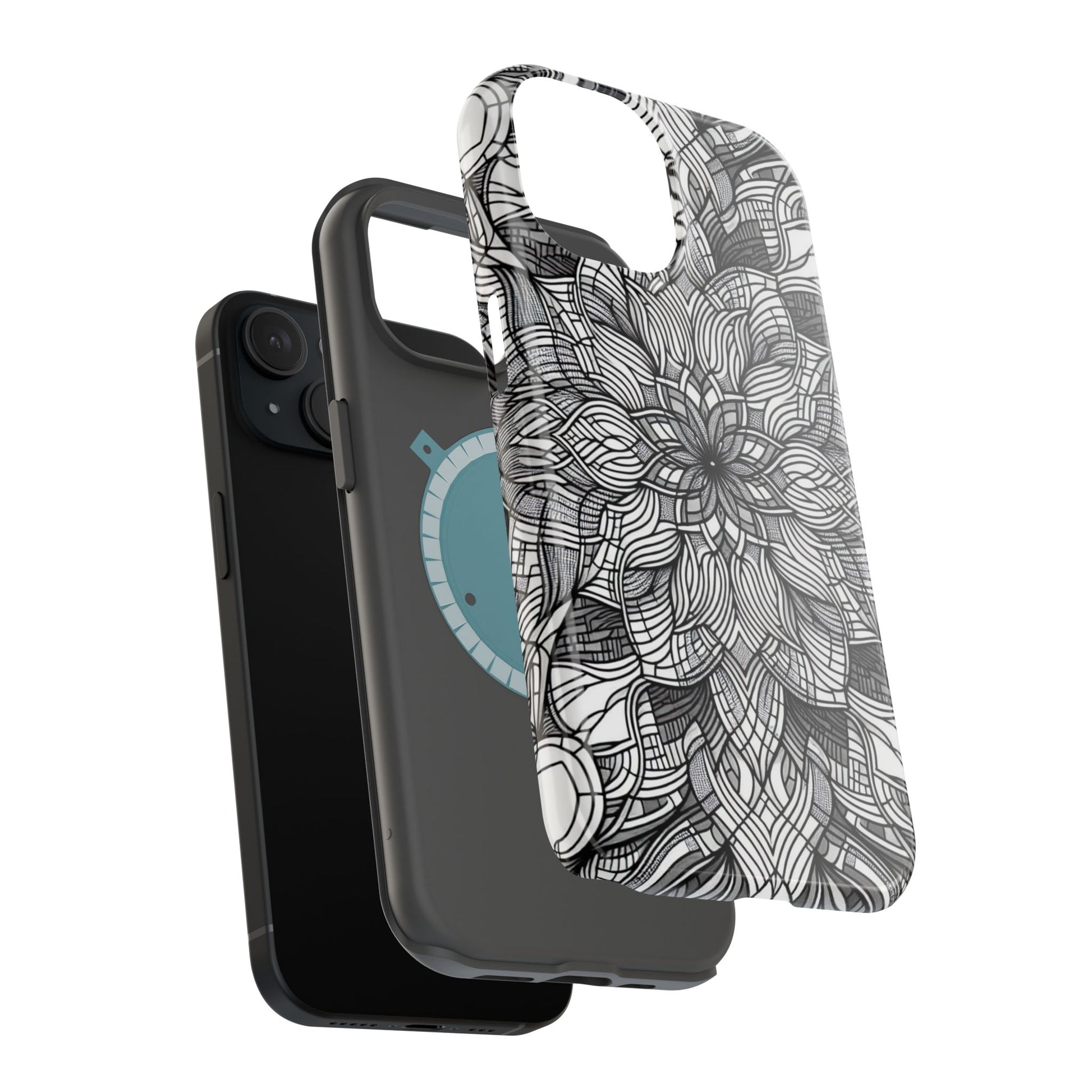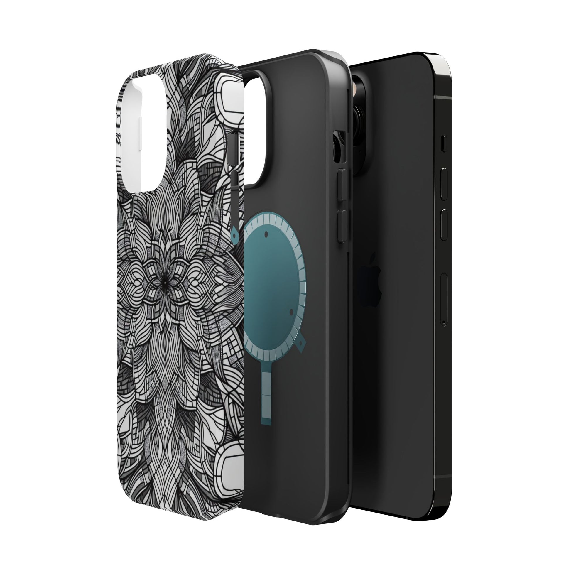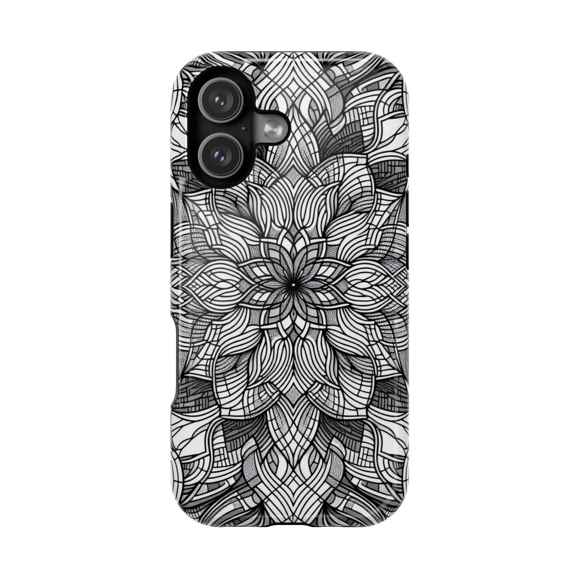 A sleek and modern iPhone Tough Case featuring a black and white art explosion design. This durable and impact-resistant case provides protection against scratches and minor bumps while offering a vibrant and high-quality print. Perfect for those who love unique and artistic phone accessories, this case is MagSafe® compatible for added convenience. Ideal for individuals looking to add a touch of creativity to their everyday life or for gifting during birthdays or holidays.