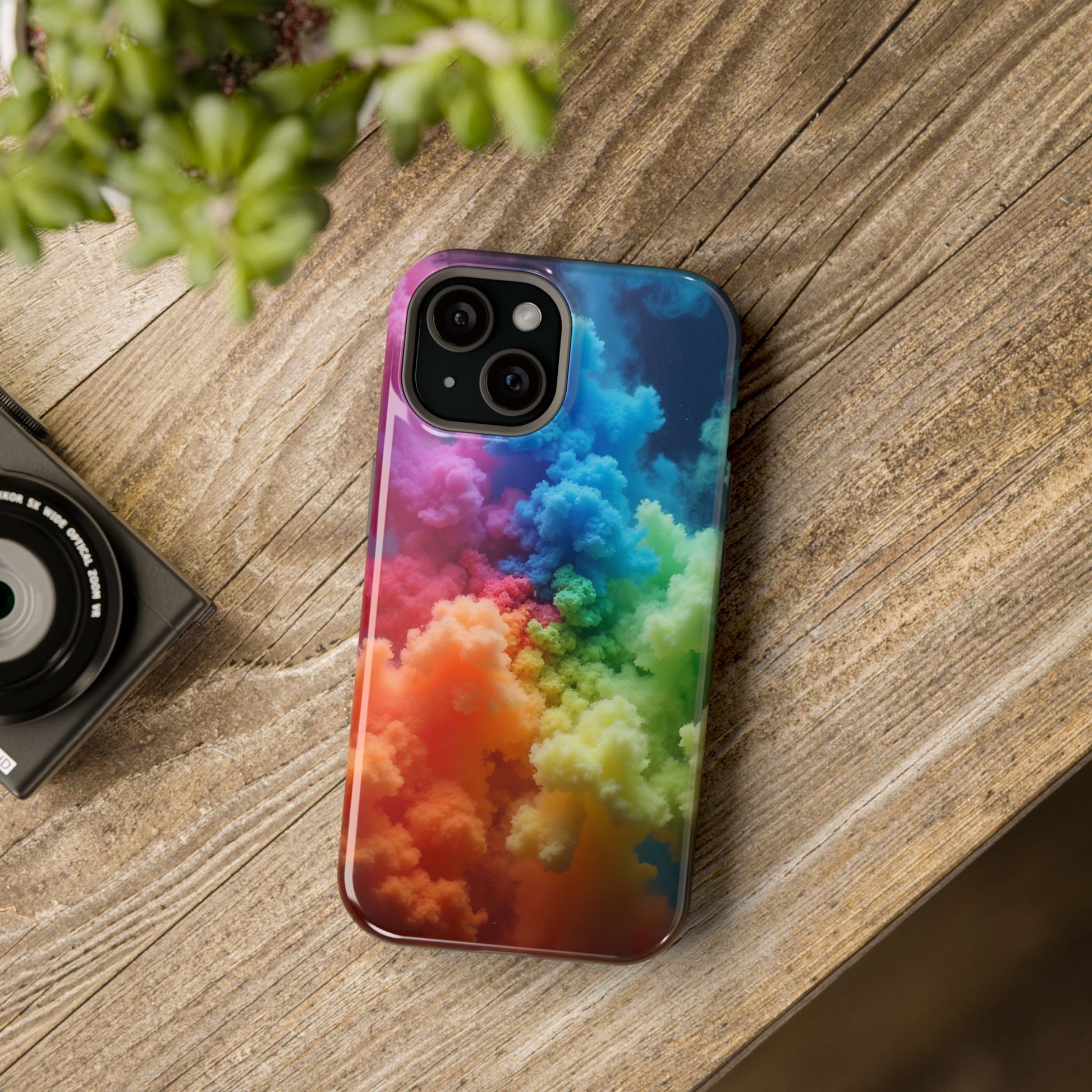 This Rainbow Mist Phone Case offers a vibrant and colorful design printed on a durable polycarbonate plastic shell with a black cushioned inner TPU lining. The glossy or matte finish options provide a sleek look while the embedded magnet enhances compatibility with MagSafe® accessories. Perfect for those who love bright and crisp designs on their phone cases, this is a great accessory for anyone looking to add some color to their tech accessories. Ideal for gift-giving during birthdays, holidays, or as a thoughtful present for tech-savvy individuals.