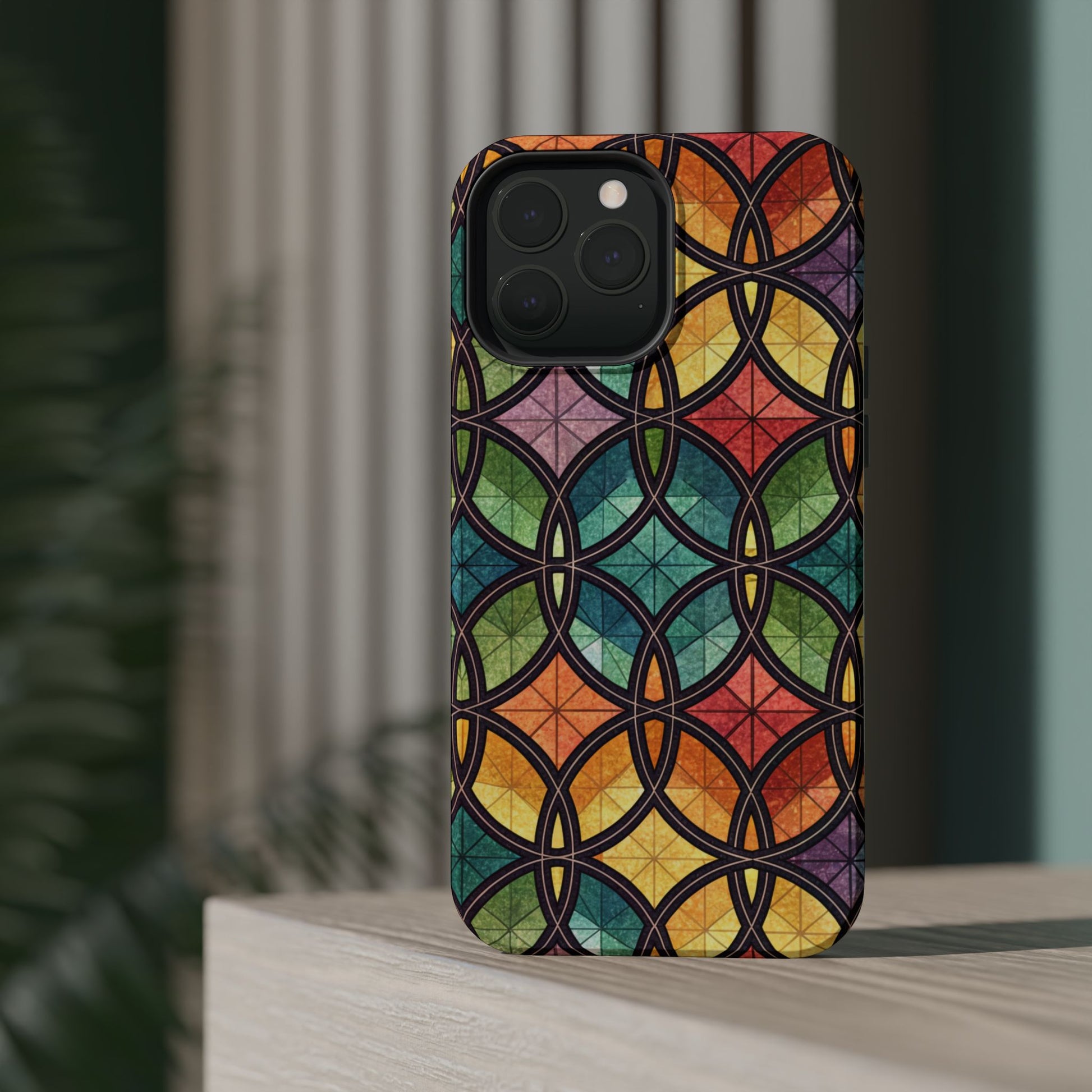 Rainbow Stain Glass iPhone Case – Durable MagSafe® Tough Phone Cover with Colorful Artistic Design