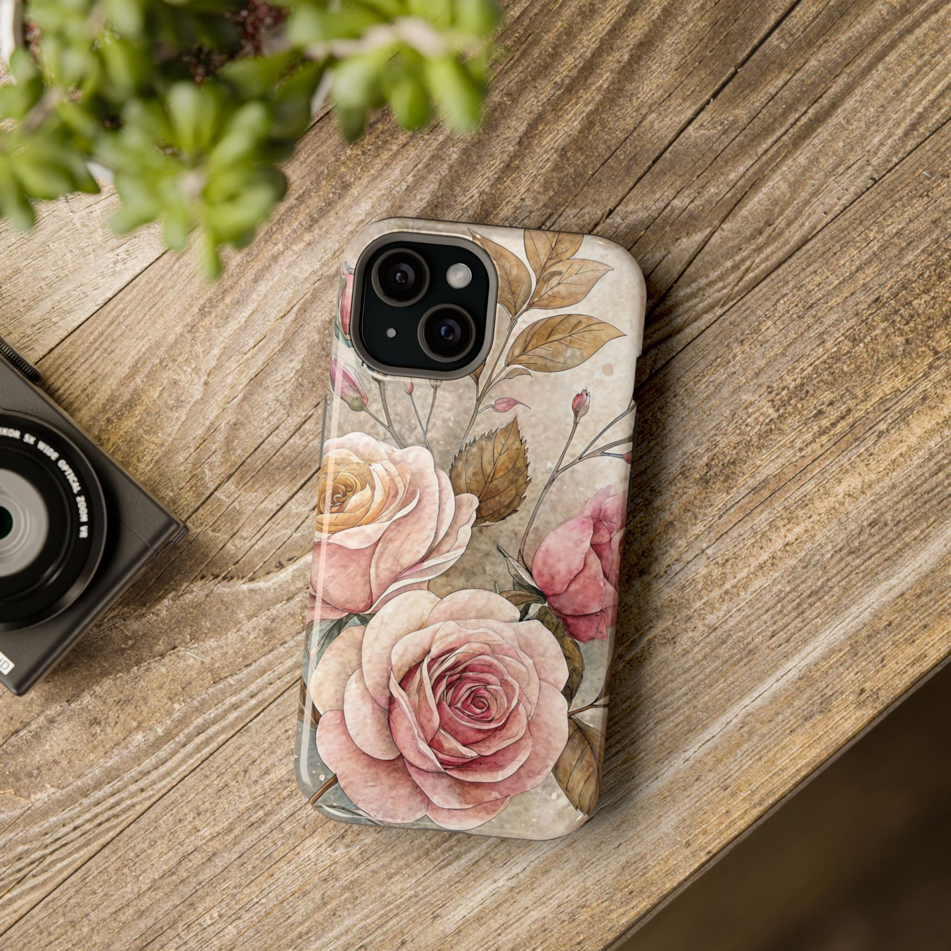 Vintage Rose iPhone Tough Case is a durable and protective phone case with a photo-realistic vintage rose design. It gives off a classic and elegant vibe, perfect for those who love vintage aesthetics and want to protect their phone in style. Ideal for iPhone users looking for a unique and durable phone case. Great for gifting on birthdays, Mother's Day, Valentine's Day, or any special occasion.